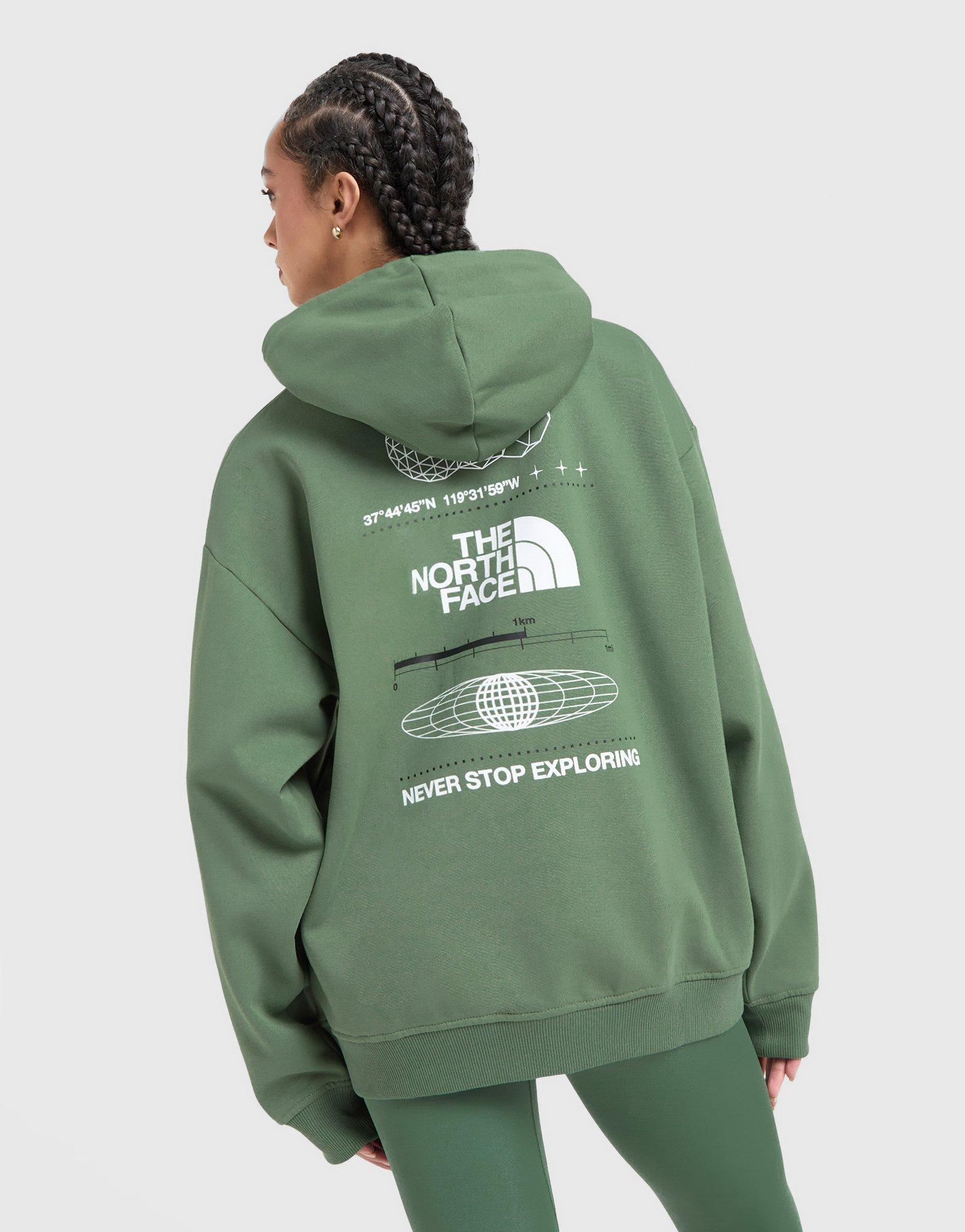 Refresh your layers with this women's Tech Graphic Hoodie from The North Face. In a Green colourway, this JD-exclusive hoodie is cut from soft cotton-blended fleece for everyday comfort. It features a pullover hood for custom coverage, with ribbed trims to hold the shape and a kangaroo pouch for easy storage. Finished up with The North Face branding to the chest. Machine washable | Our model is 5'8" and wears a size S.