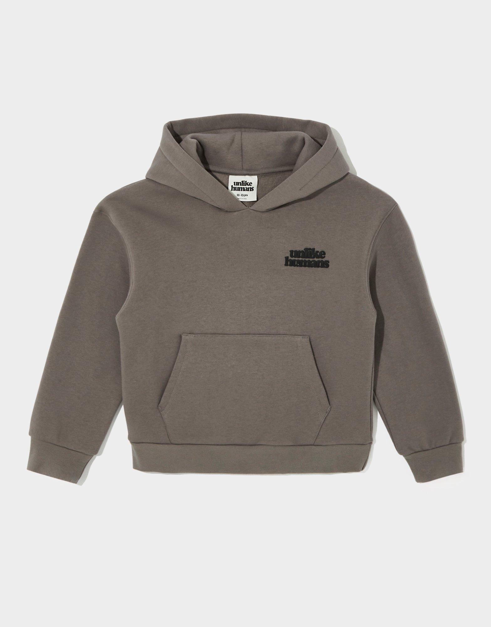 Refresh your layer game. This juniors' Unlike Humans Hoodie is exclusive to JD. It features a pullover hood for coverage. Ribbed trims to hold the shape. And a kangaroo pouch for easy storage. Landing in Charcoal Grey, it's finished with signature branding to the chest. Machine washable. | This product fits small. We recommend that you size up.